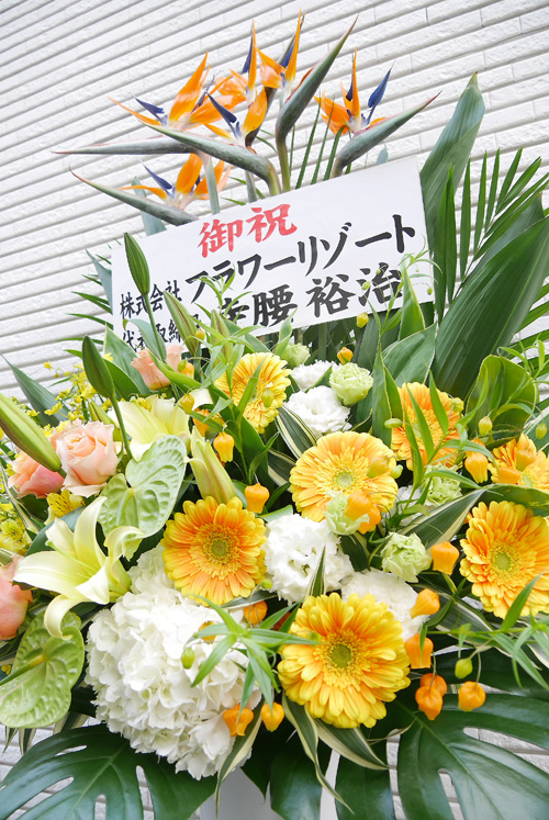 提携フラワーショップからのお届けの場合は、入荷事情並びに現地の風習により【使用する花材、スタンド、札の形式 が 変更】となる場合がございます。