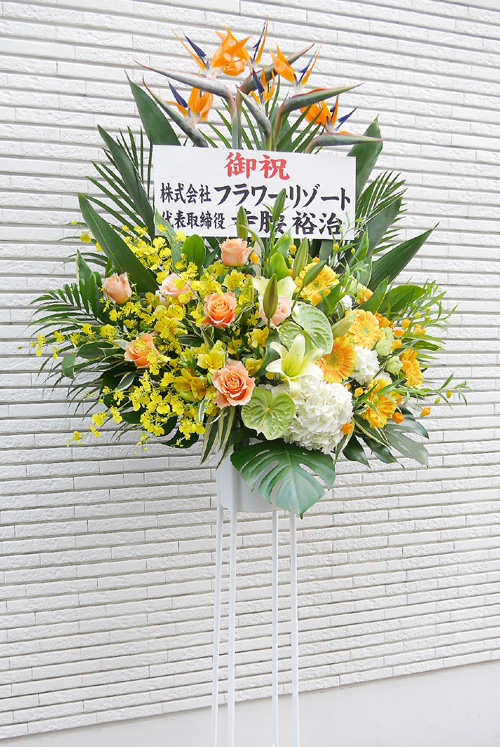 1段タイプのスタンド花をボリュームアップし、高級花を中心に豪華にアレンジ。ひときわ目立つスタンド花に仕上げてお届けいたします。ご指定の色合いまたはイメージをご相談ください。お届け先にふさわしいお花をご用意してお届けいたします。