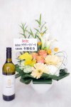 明るくお洒落なビタミンカラーのアレンジメントとオーストラリア産白ワインとセットにしてお届け。シャルドネの口当たりと長い余韻はワイン通の方にもご満足いただけます。